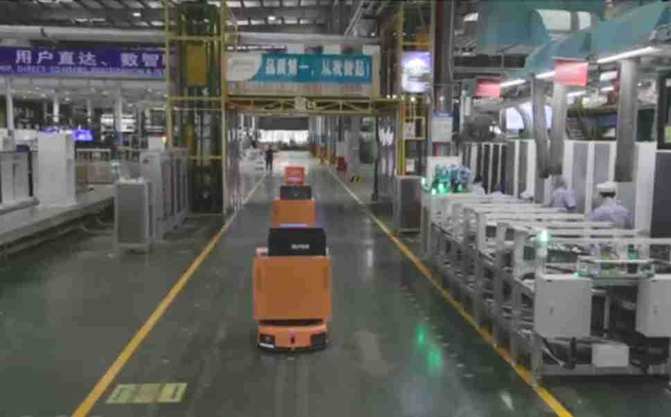 为车载冰箱物流配送打造的智能解决方案,,,,包含产中物流通过潜伏举升AMR搬运至线边,,,,产后成品物流智能仓储,,流程包含产中物流智能齐套入库,,,线边安灯叫料AMR智能配送至线边,,,成品入库、、、出库,,,通过无人堆高车机器人,,,智能仓储管理替代人工作业管理,,,,实现更高存储、、、更高效率、、更具柔性化的解决方案。。。