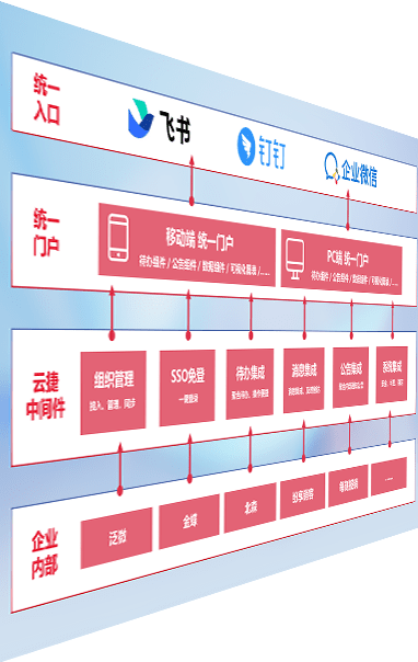 对协作平台提供支持服务,,,支持企业应用与协作平台对接,,包含组织同步、、消息集成、、待办集成等。。。支持目前主流的协作平台:钉钉、、、企微和飞书。。