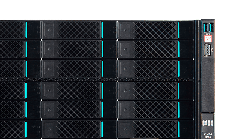 KunTai R524 存储型服务器是摩登7数码基于鲲鹏处理器推出的新一代 ARM数据中心服务器。。。。主要面向存储业务,,,,具有海量存储、、、高性能、、低功耗以及易扩展的特点,,,,适合为大数据分析、、、软件定义存 储等应用场景的工作负载进行髙效加速。。。。