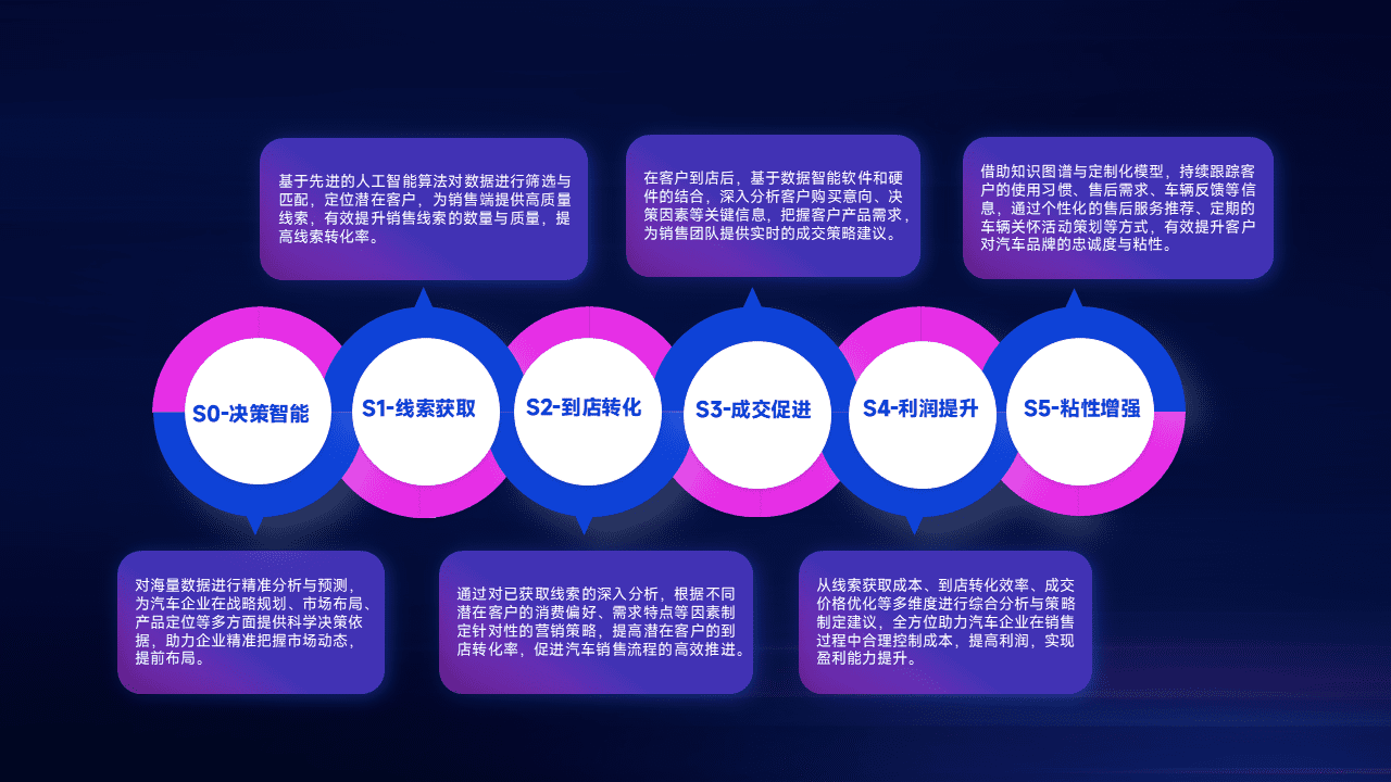 通过拓宽潜在客户来源、、优化线索分配并提高到店转化率,,,以增强销售效率。。同时,,,,利用线索数据不断优化分析模型,,有效提升转化率,,,,扩大营销影响力。。。